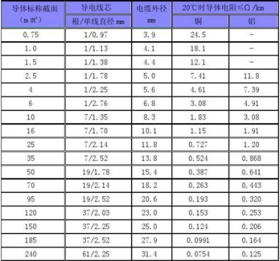 一般電線規(guī)格根據(jù)截面有:0.75、1.0、1.5、 2.5、 4、6、10、16、25、35、50、70、95、120平方。